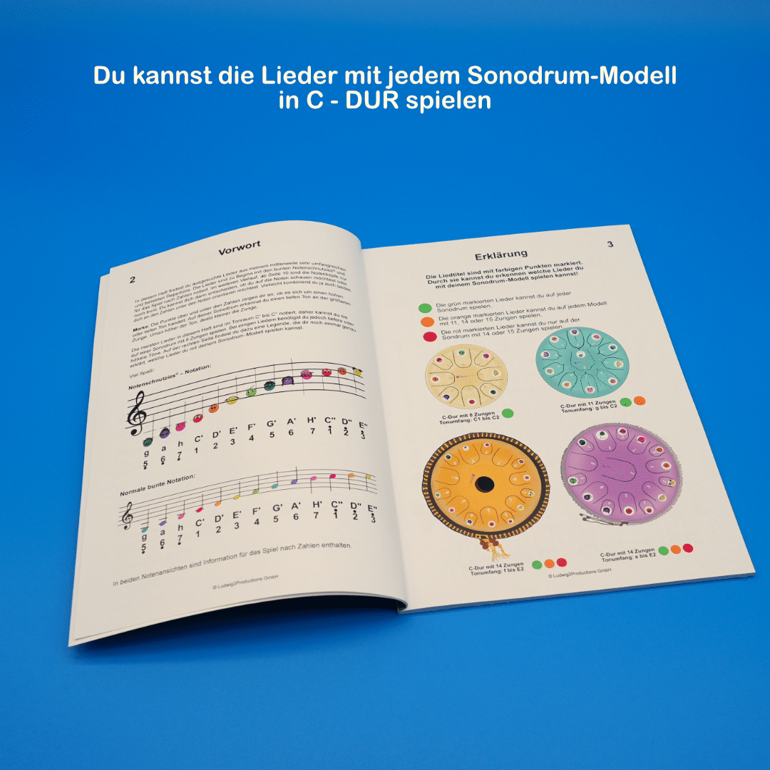 Mit diesem besonderen Liederheft bekommst du über 50 beliebte Lieder von Simone Ludwig, sowie einige Traditionals für deine Zungentrommel in C-Dur. Die Noten in diesem Heft werden durch farbige Notenköpfe besonders anschaulich dargestellt. Das Spielen nach Zahlen ist ebenfalls möglich. Freue dich auf eine kunterbunte Liederreise durch den Alltag und die Jahreszeiten. Die Melodien – mal fröhlich, mal verträumt, laden dich ein, deine Zungentrommel spielerisch und klangvoll zu entdecken. Inklusive Sticker für die Zungentrommel!