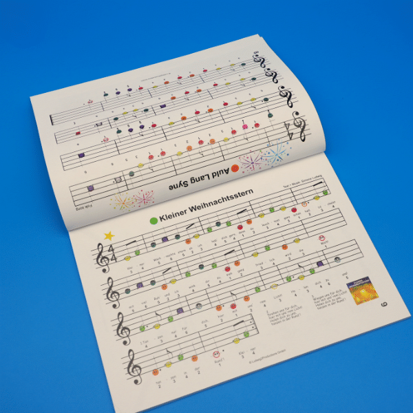 Für das Spielen der Lieder sind keine Vorkenntnisse erforderlich. Die Noten in diesem Heft werden durch farbige Notenköpfe besonders anschaulich dargestellt. Die Farbcodierung erleichtert das Verständnis und ermöglicht einen schnelleren Einstieg ins Spiel – auch für Einsteiger. Das Spielen nach Zahlen ist ebenfalls möglich.