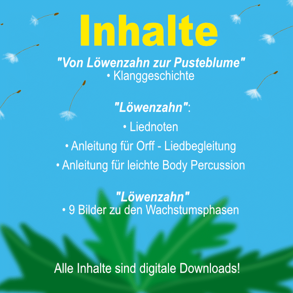 • Klanggeschichte „Von Löwenzahn zur Pusteblume“ (Auf YouTube kannst du dir ein Video dazu anschauen!)