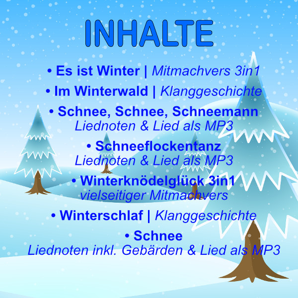 Hier bekommst du musikalische Inhalte als Sammeldownload rund um das Thema WINTER. Das Rundum-Sorglos Paket für Kita & Grundschule!
